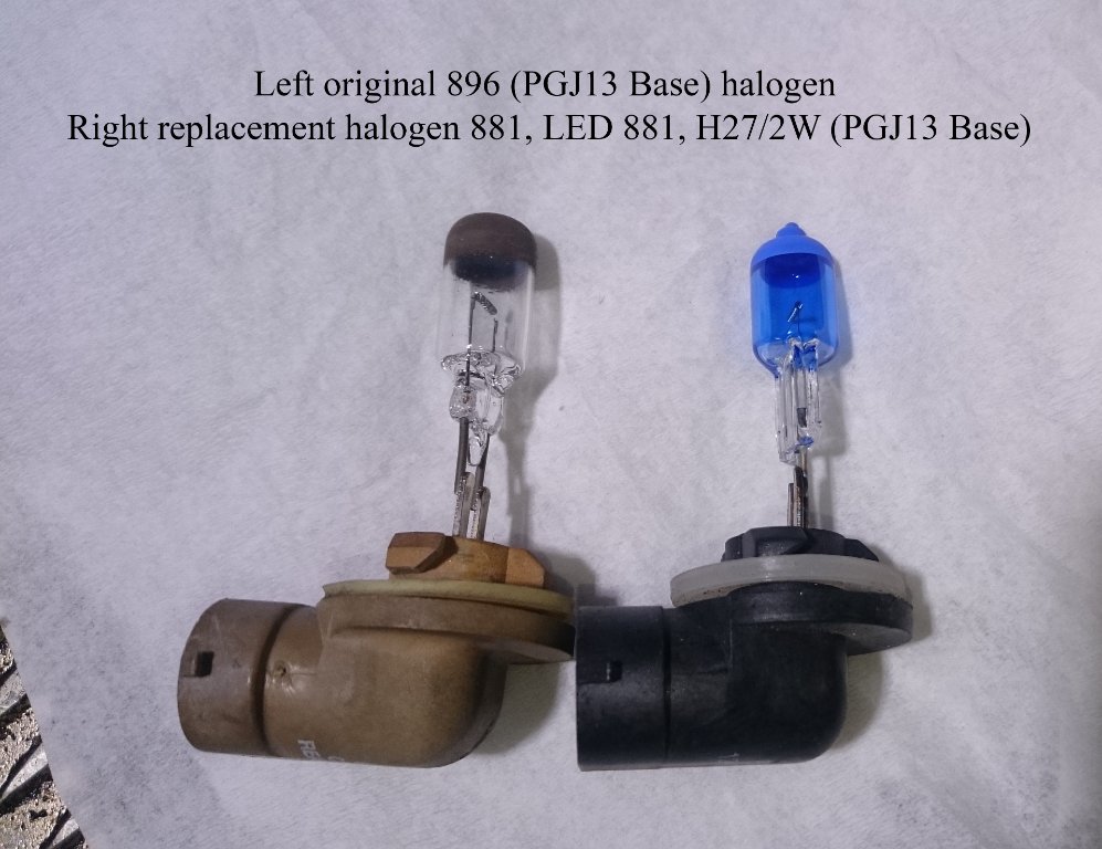 Dimljuslampa: halogen 881 27W, Led 881 H27/2W (PGJ13 Base)