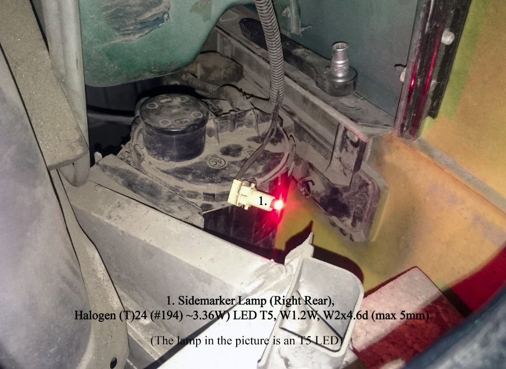 Sidomarkeringslampa höger bak, röd T5 LED på bilden.