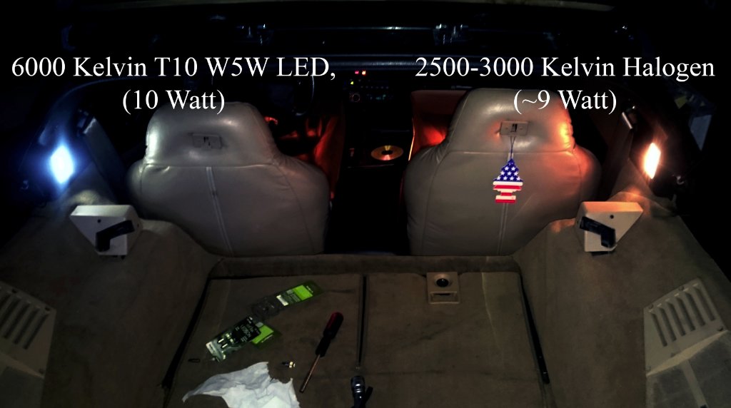Bagageutrymme (Coupe) skillnad mellan en 6000k LED (10W) och en ~3000k halogen (~9W)