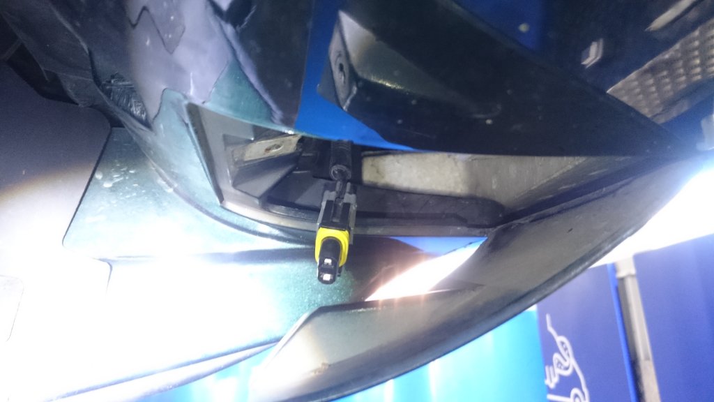 Dimljuslampa honkontakt under fronten.