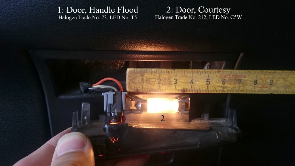 Lampor i dörrhandtaget, avlånga halogen No. 212 LED C5W